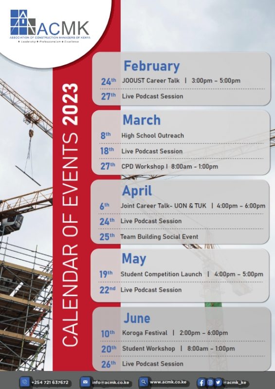 The Association of Construction Managers of Kenya (ACMK) is a professional body for all project and construction managers who have come together to promote the professional practice of construction and project management.